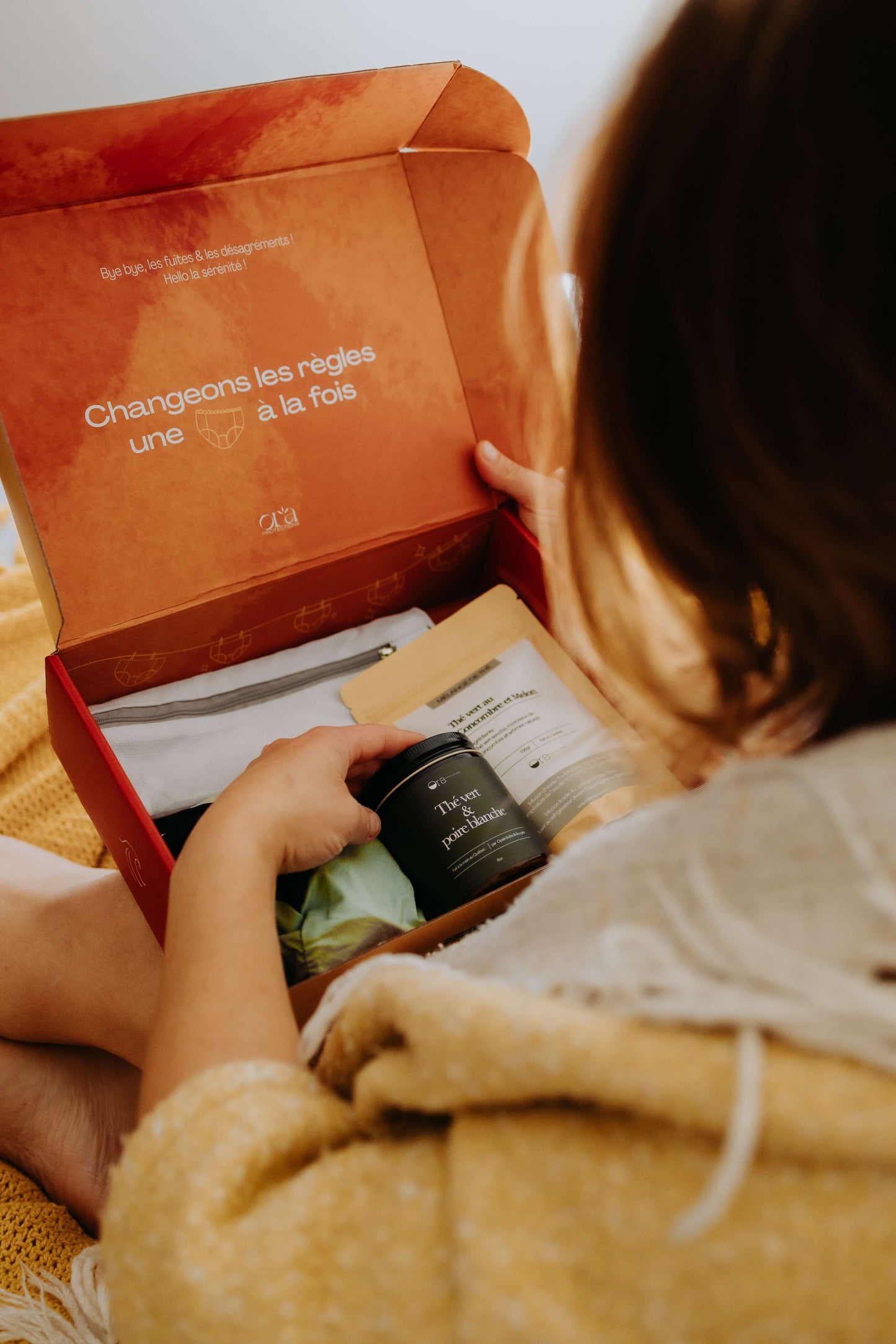 Ce qui est inclus: 1 culotte menstruelle Bikini Coton Absorption Élevée, 1 sac de lavage, 1 Bougie - Miel, Figue & Gingembre,1 Tisane - Roobois Provence.