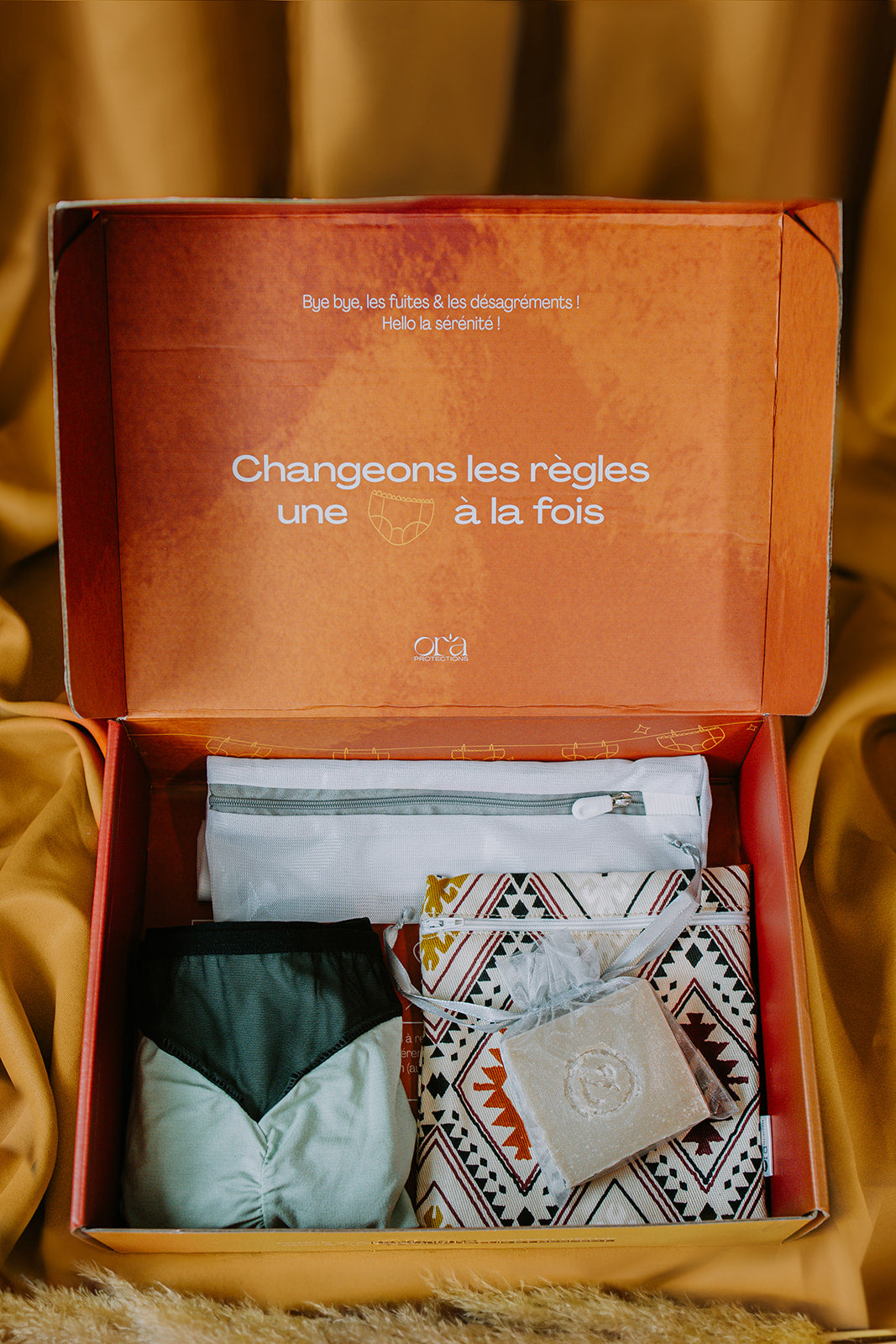 Le coffret qui représente l’essence d’ORA, le kit essentiel pour vivre une période menstruelle plus sereine. Ce qui est inclus: 1 culotte menstruelle Bikini Coton Absorption Élevée, 1 sac de transport au choix, 1 savon détachant, 1 sac de lavage.